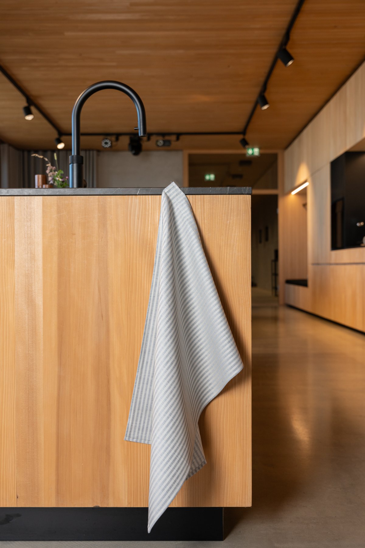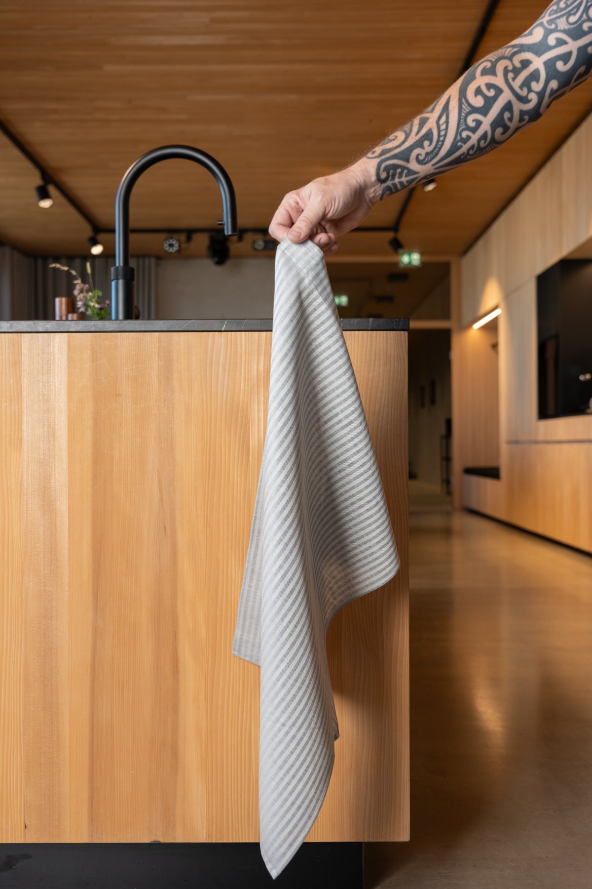 Mit dem eingenähten Magneten ist dieses Geschirrtuch die perfekte Ergänzung zu unserem "patentierten" Magnetmodul in deiner Arbeitsplatte.