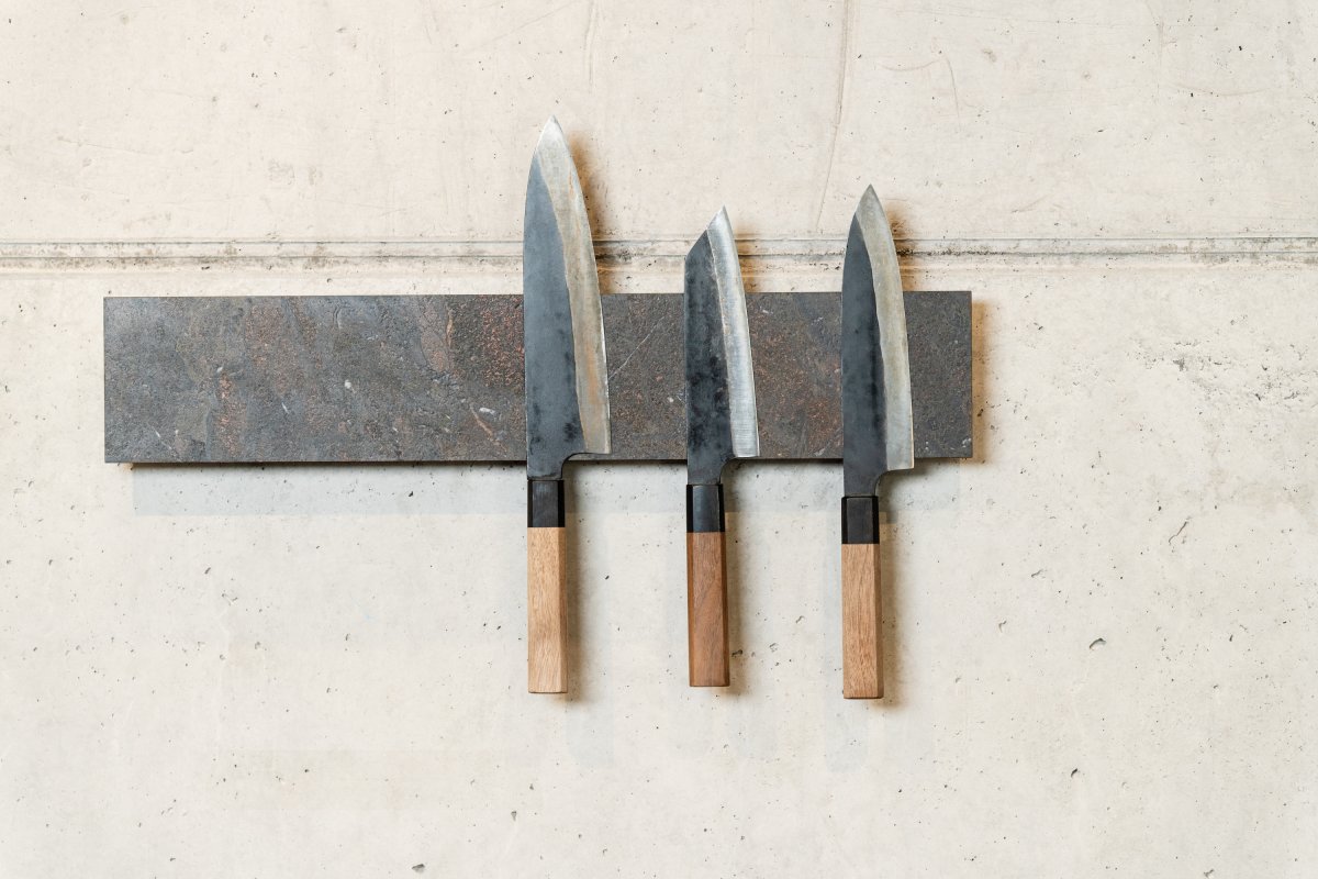 Heute lebt diese Legende weiter – nicht als Schwert, sondern als Messerstein für wahre Meister der Küche. Gefertigt aus massivem Naturstein, hält er deine Messer sicher durch die unsichtbare Kraft mächtiger Magnete – fast wie Magie.