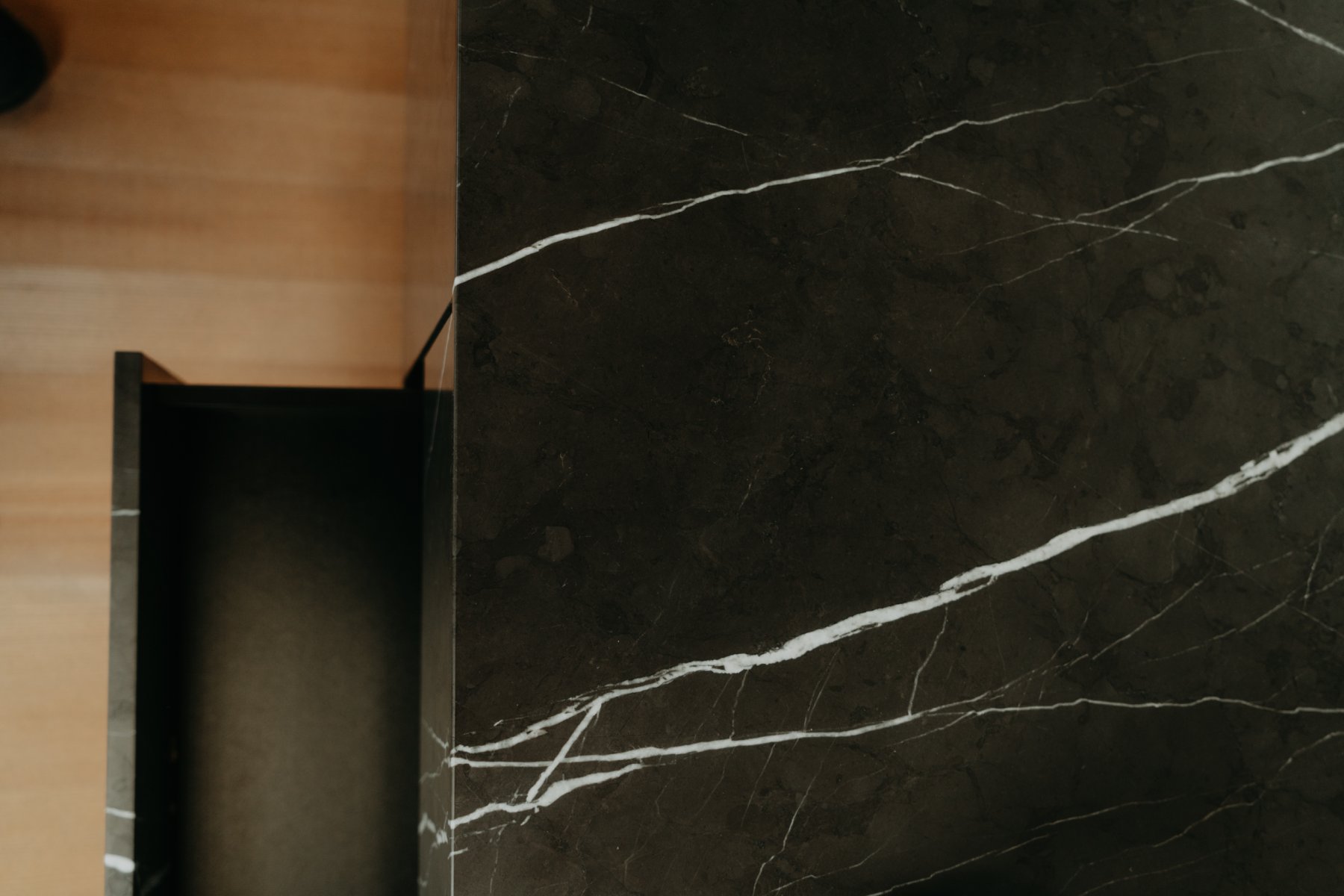 Hergestellt aus edlem iranischem Pietra Grey Marmor, ist jedes Detail makellos verarbeitet und die durchgehende Struktur verleiht ihm eine unvergleichliche Raffinesse.
