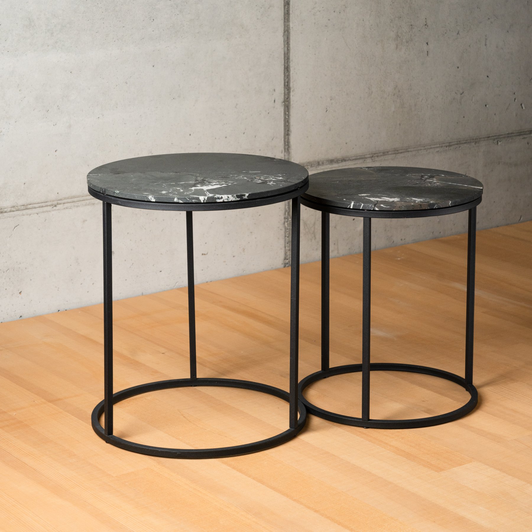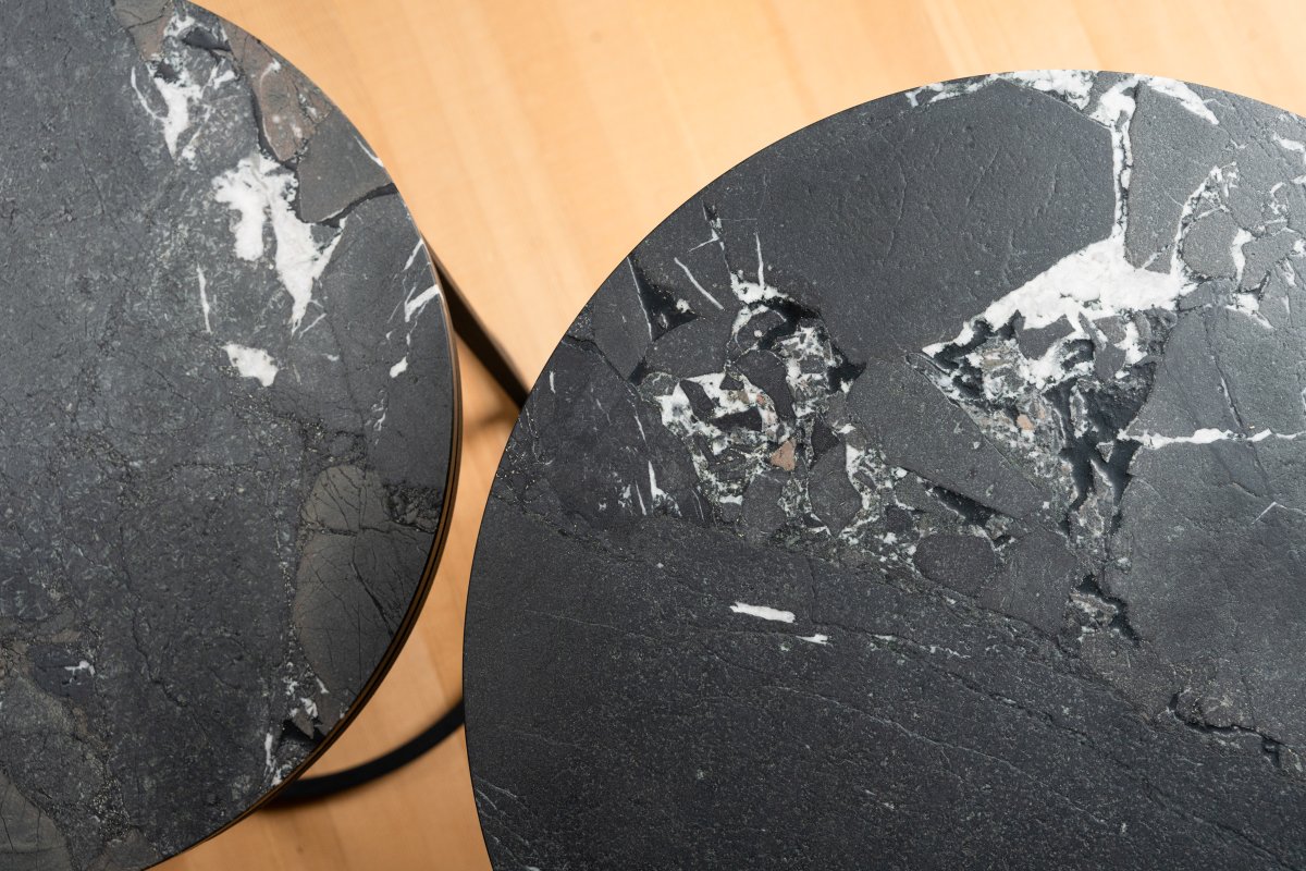 Zwei runde Dekotische aus edlem Naturstein. Mal zusammen, mal solo – immer lässig, immer stylisch. Perfekt für deine Lieblingsstücke oder einfach so.