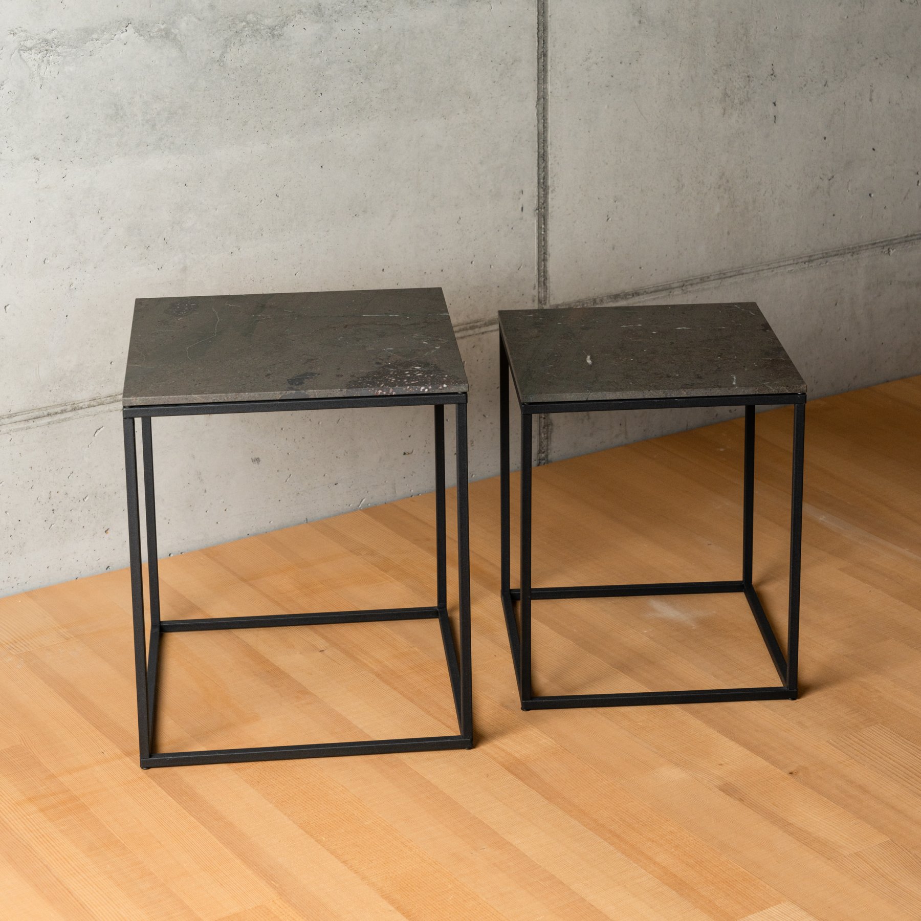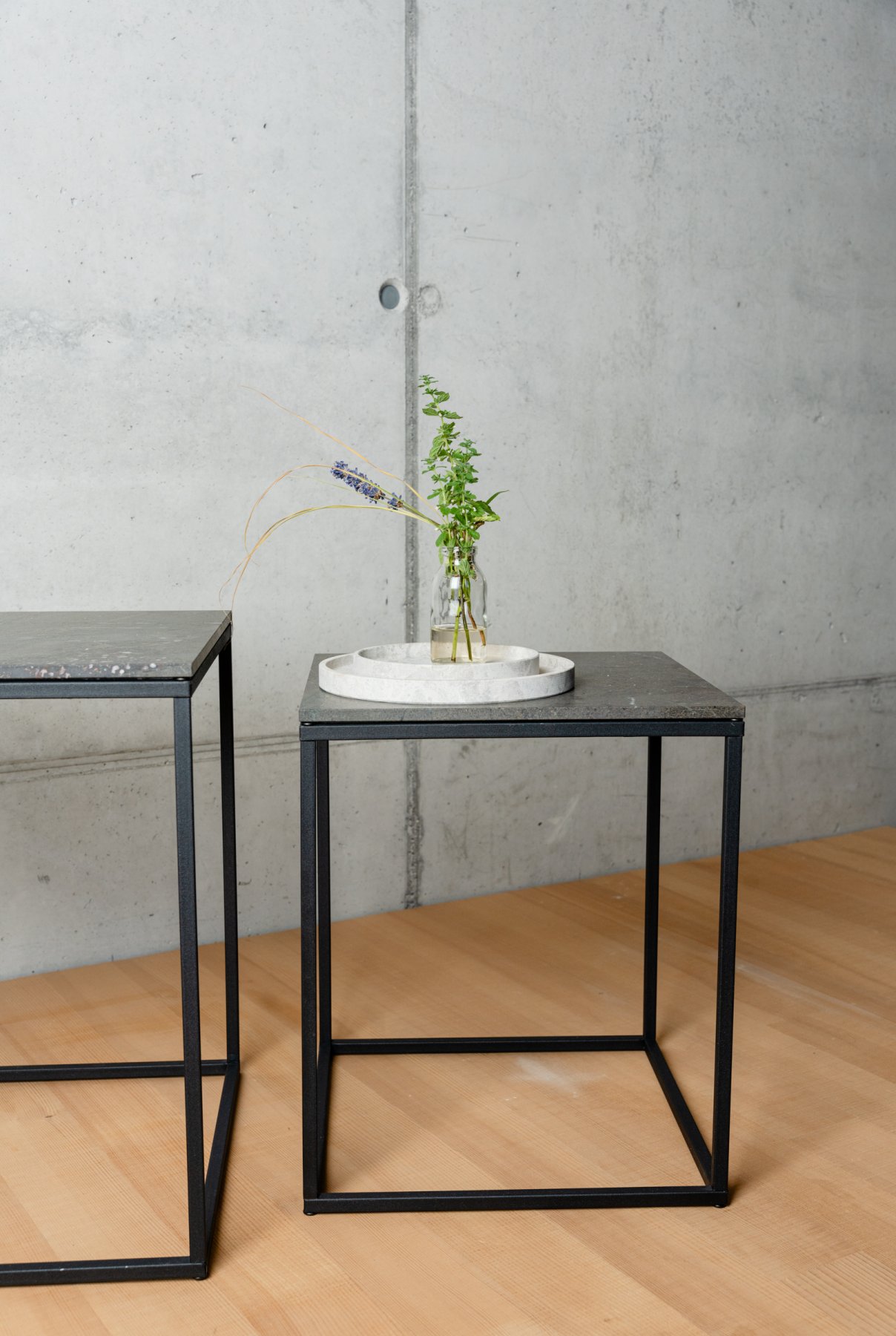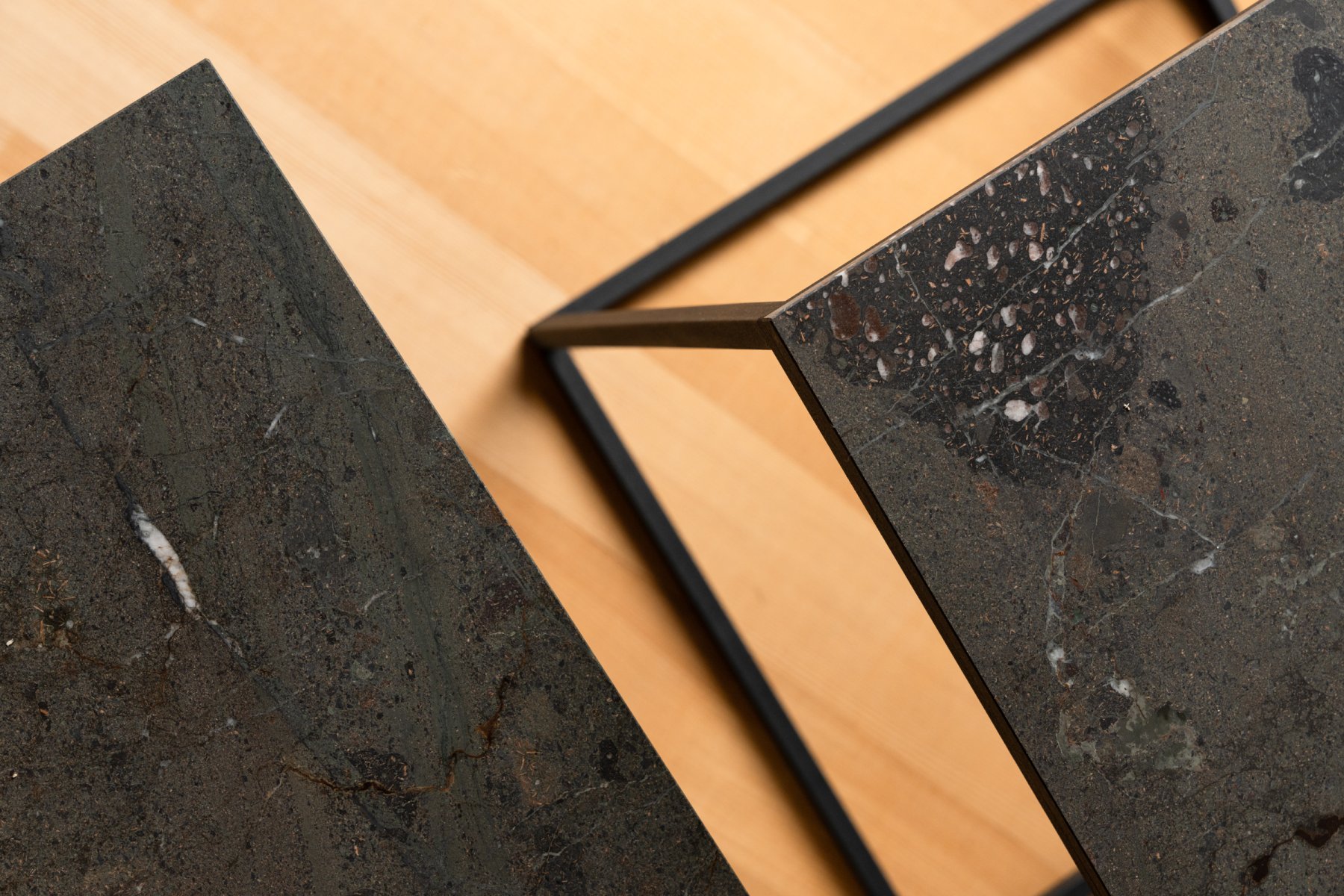 Zwei Beistelltische aus brasilianischem Quarzit Breccia Imperiale. Charakterstark, flexibel und immer stylish – ob zusammen oder solo.