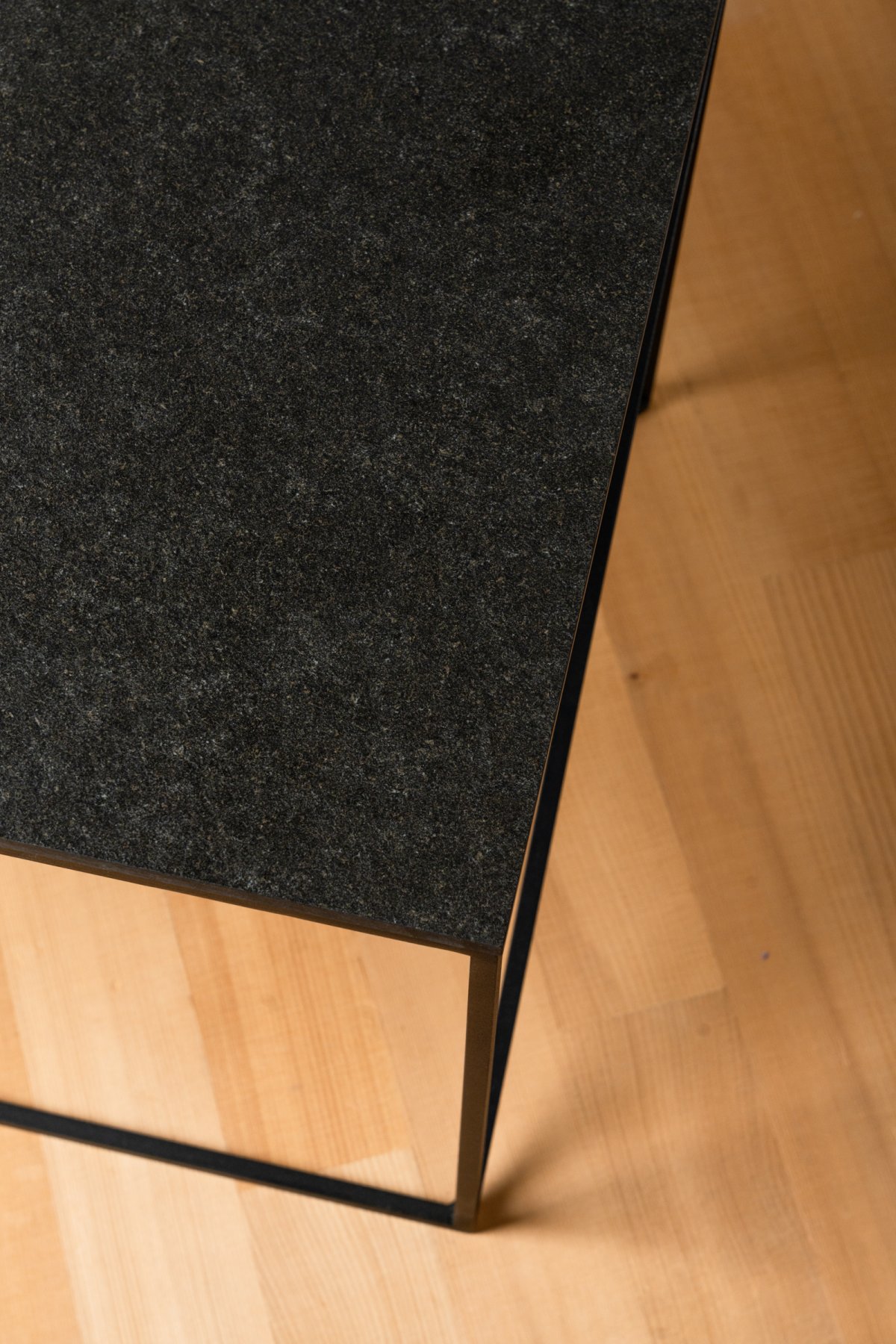 Dieser Couchtisch ist die perfekte Mischung aus Natur und Technik. Die satinierte Steinplatte aus dem Material Atlantic Stone wirkt schwerelos auf dem clever entworfenen Stahlgestell. Ein echter Hingucker, der Minimalismus neu definiert – genial einfach, einfach genial.