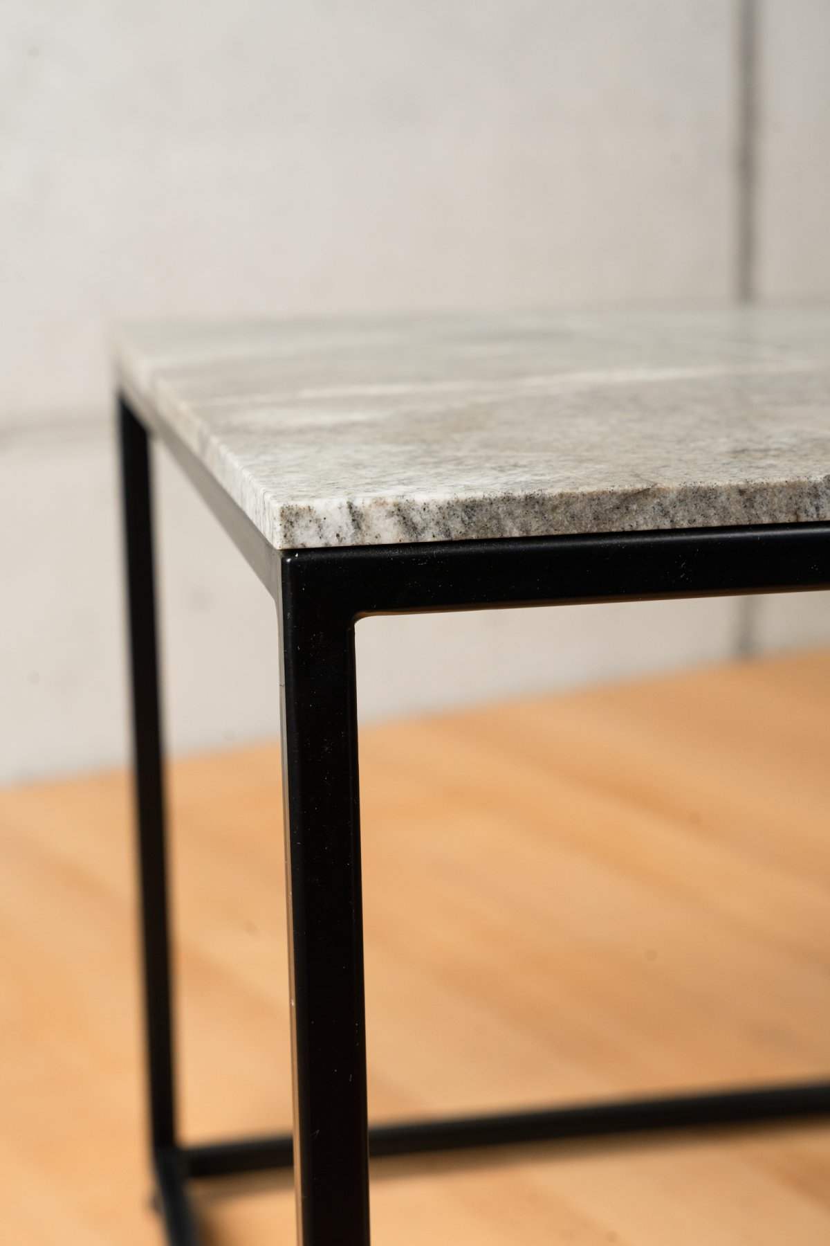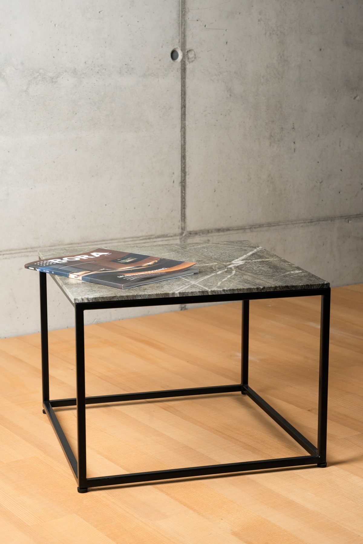 Quadratisch, schlicht, markant. Tavon kombiniert Naturstein mit filigranem Stahlgestell – minimalistisch, aber mit Charakter. Passt überall, fällt auf.