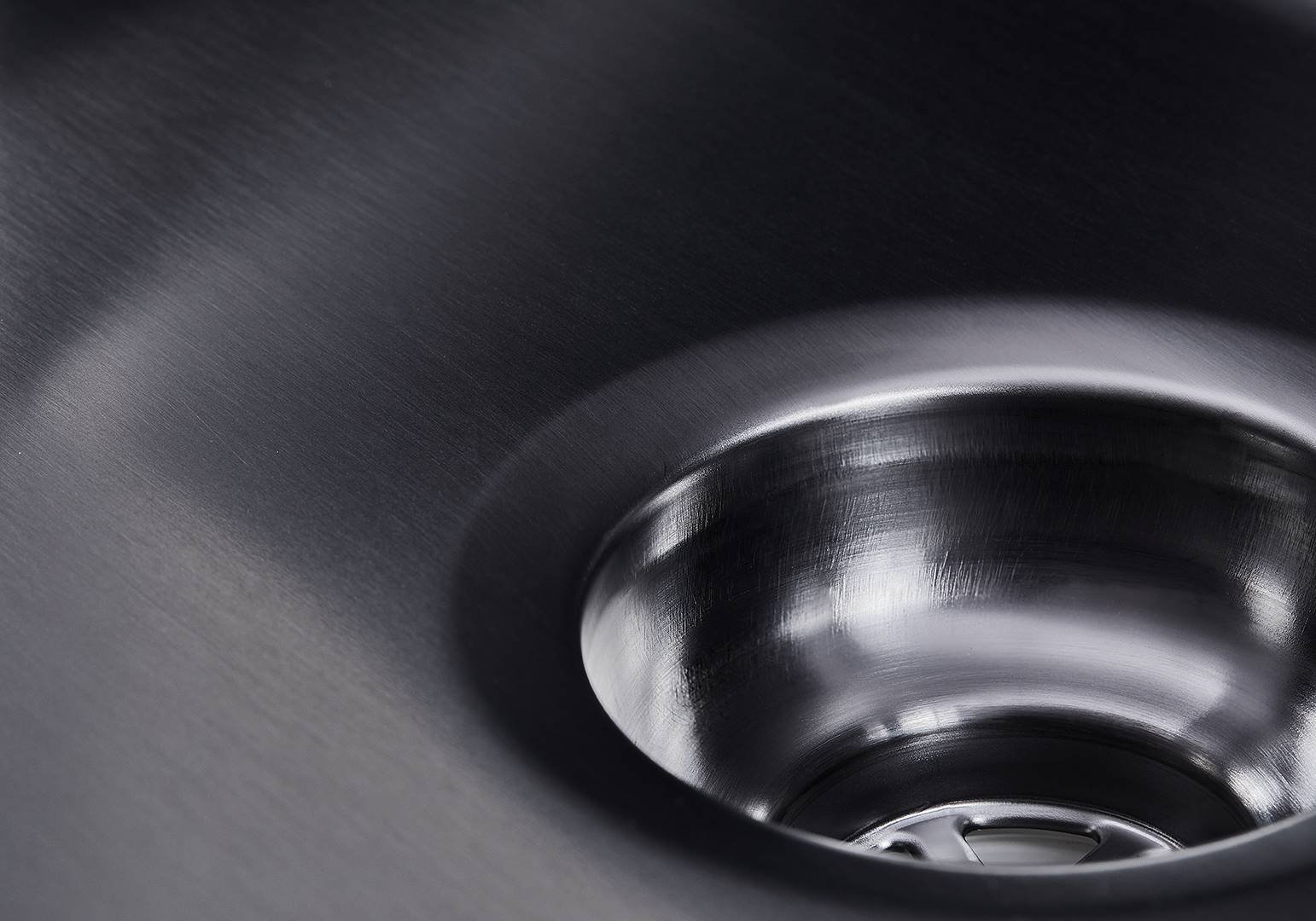 Dank des speziellen PVD-Prozesses erhält das Waschbecken seine markante, geschwärzte Oberfläche. Diese verleiht deiner Küche einen stilvollen, urbanen Touch und unterstreicht den edlen Charakter des Beckens.